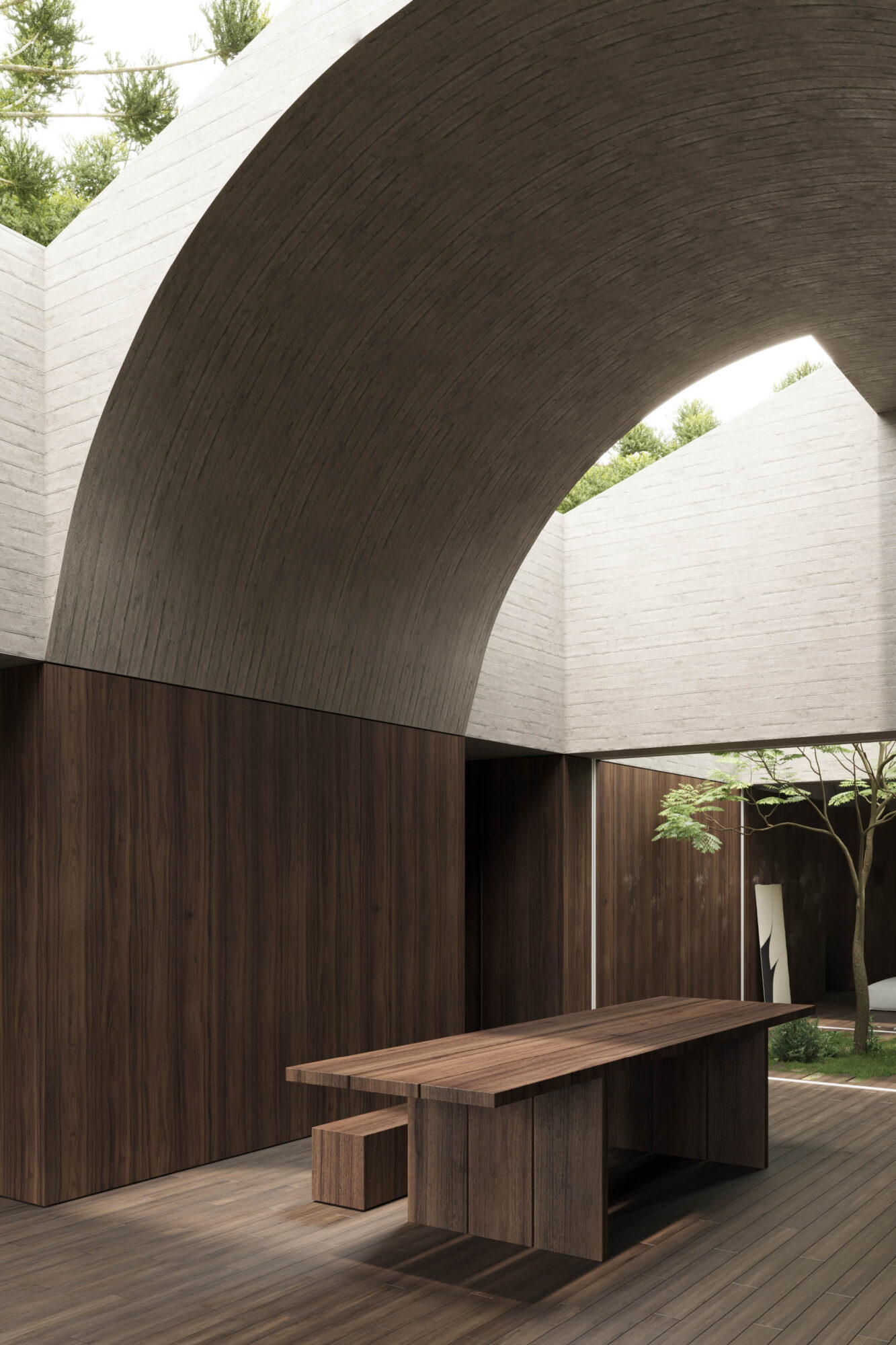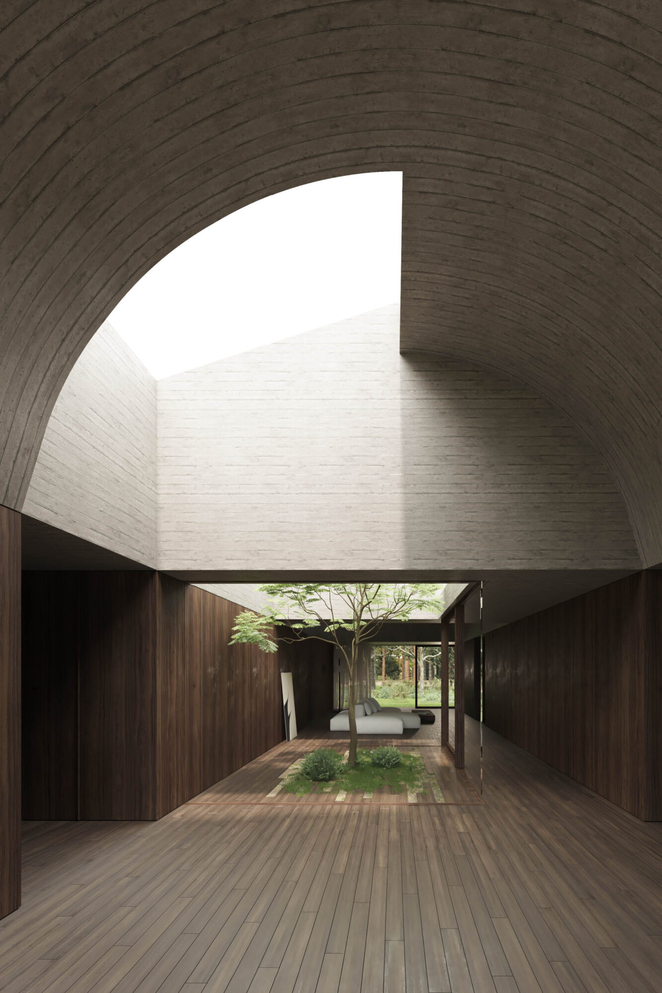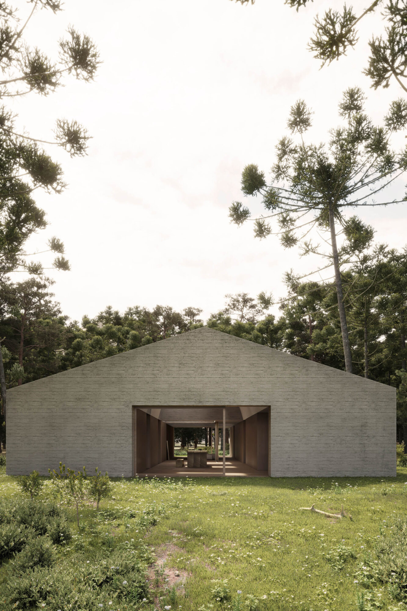 La Casa en el Bosque concebida como la construcción de un vacío habitado, donde convergen al mismo tiempo la dicotomía conceptual del lleno y el vacío, lo material y lo intangible.