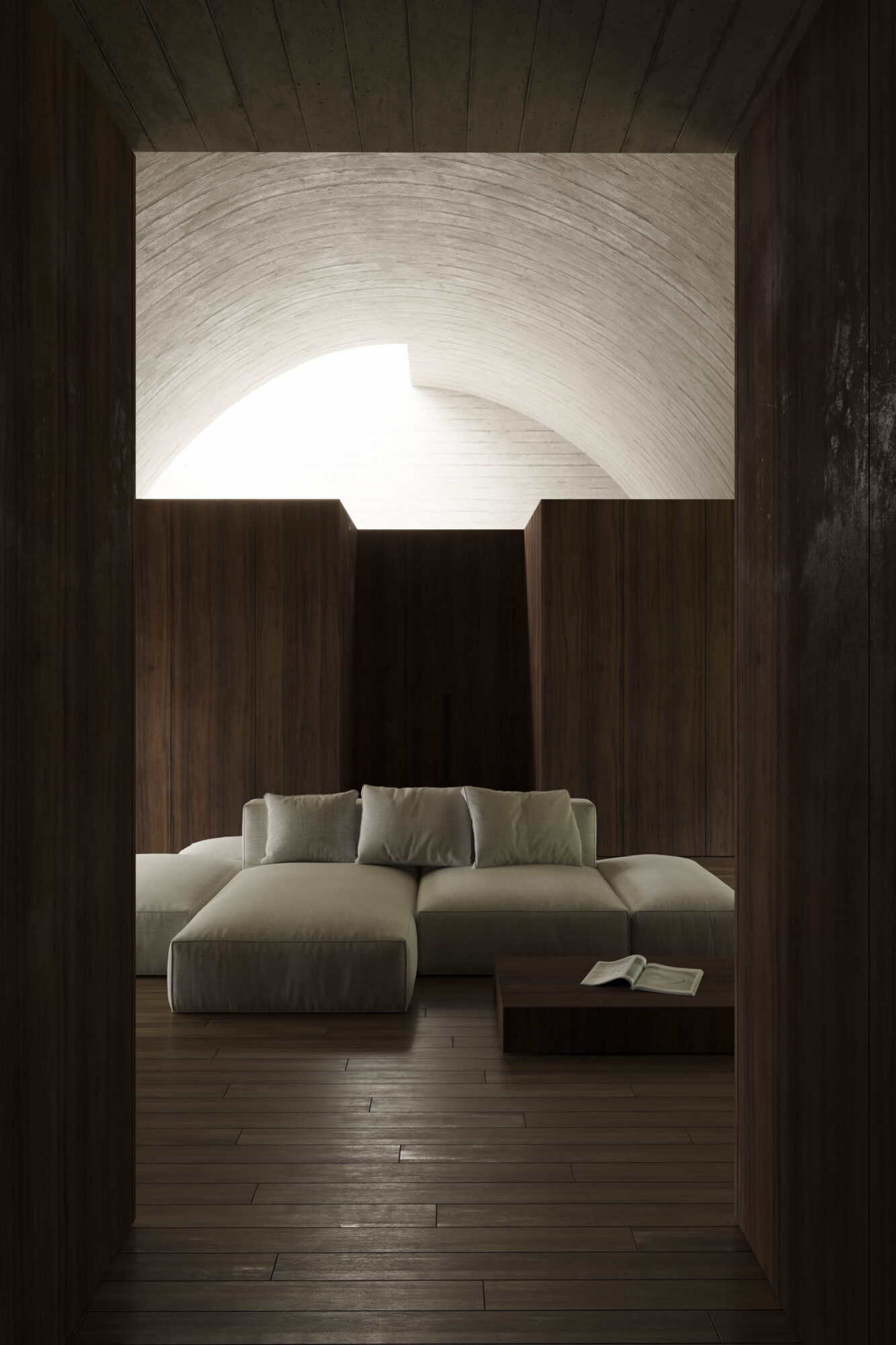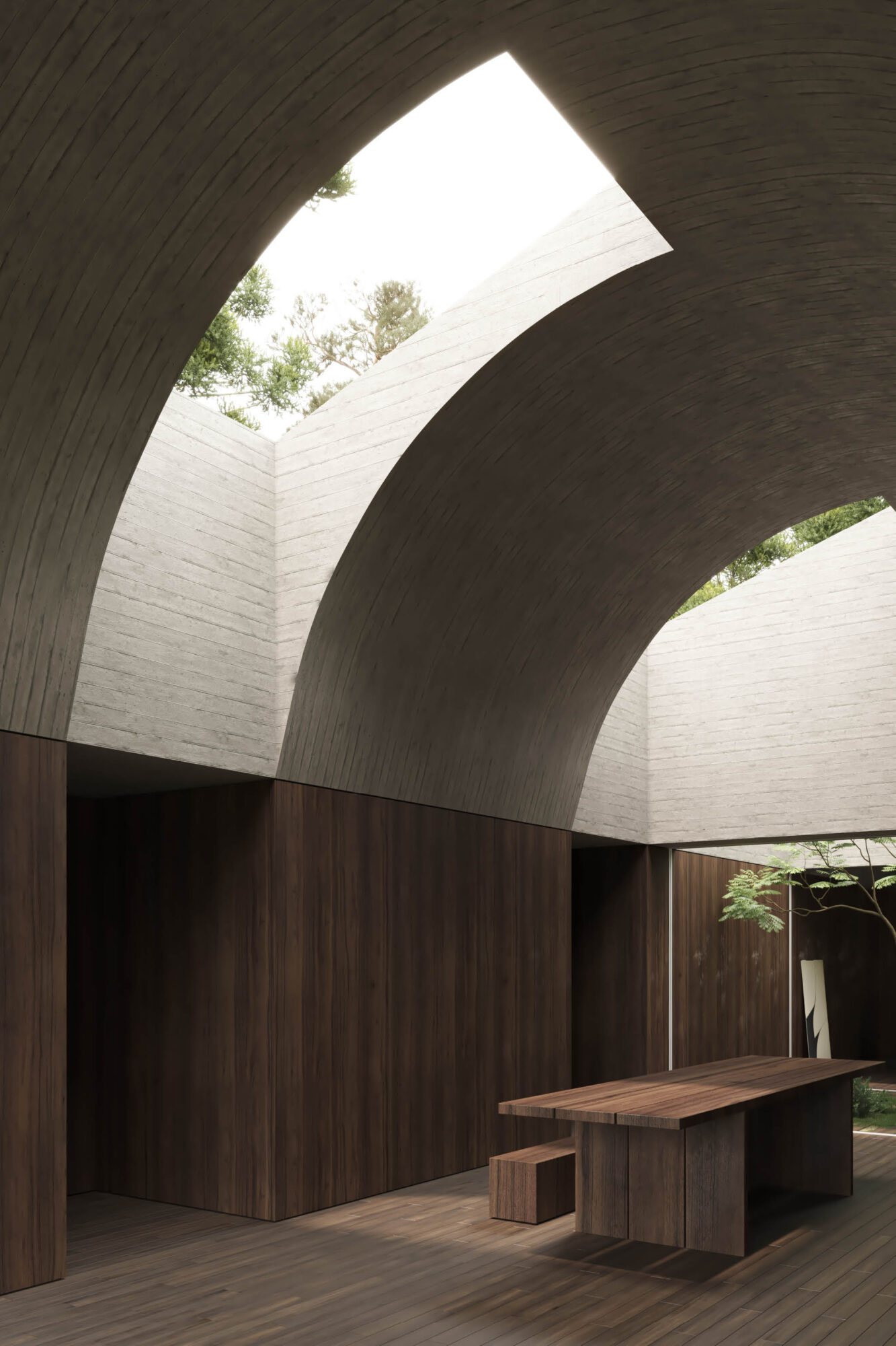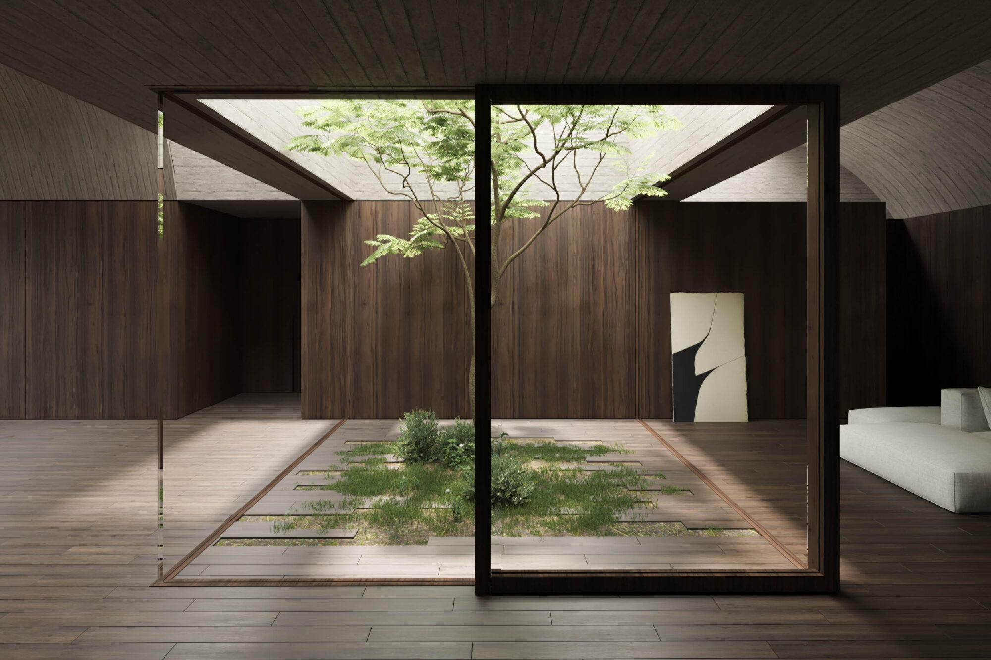 La Casa en el Bosque concebida como la construcción de un vacío habitado, donde convergen al mismo tiempo la dicotomía conceptual del lleno y el vacío, lo material y lo intangible.