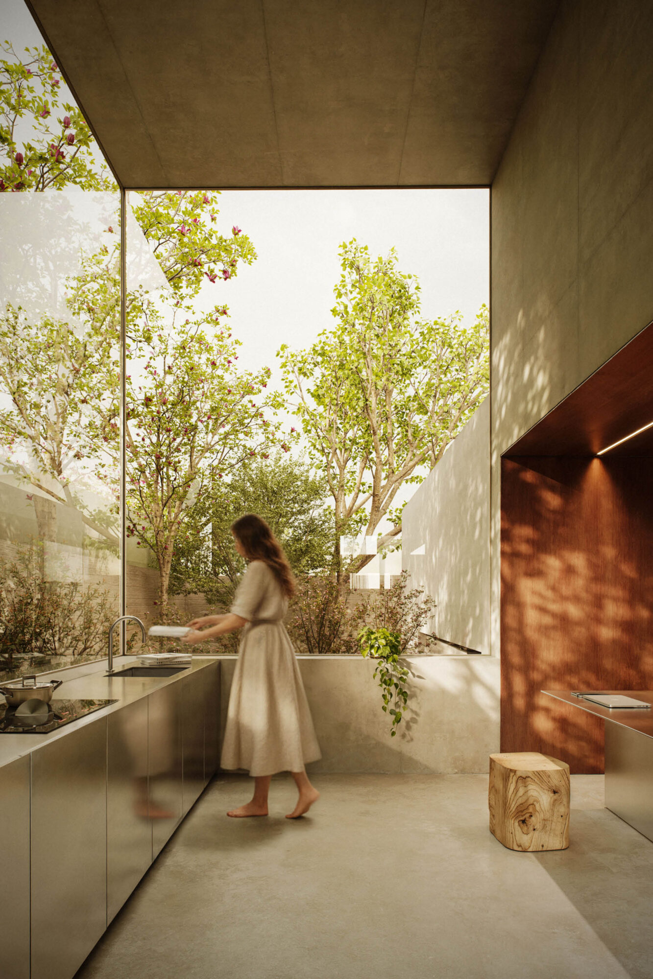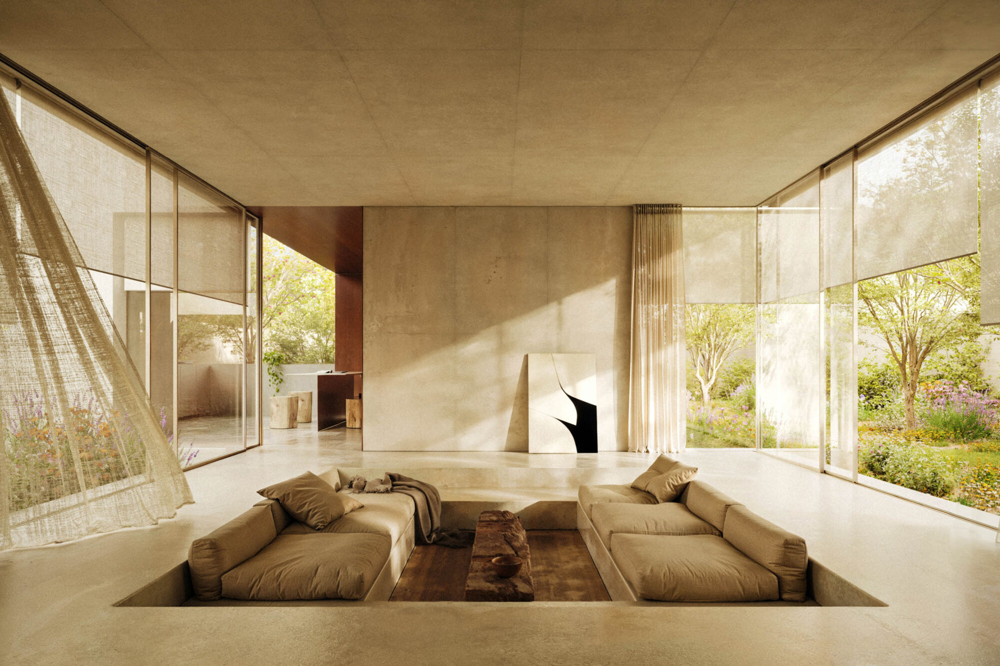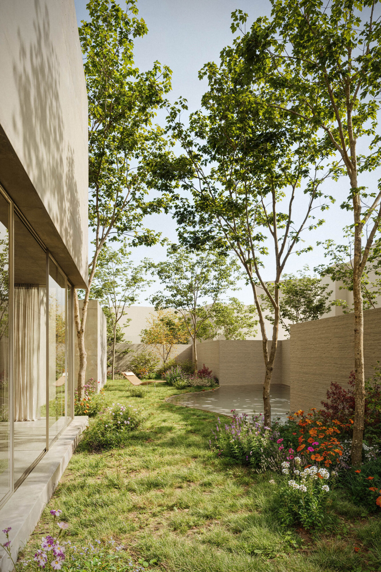 Es una arquitectura que respira con la naturaleza, que se adapta a sus ritmos y reconoce su presencia como parte fundamental del proyecto. Los materiales, las aperturas y las transiciones espaciales propician una relación fluida entre interior y exterior, generando atmósferas cambiantes a lo largo del día. La casa no se impone al lugar, sino que lo abraza, lo interpreta y lo potencia.