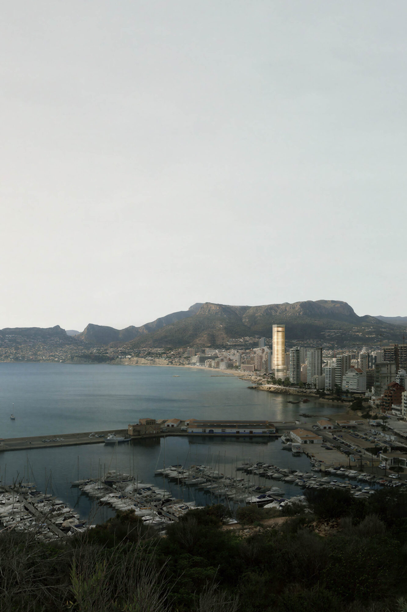 En medio del vasto horizonte marino, donde el viento parece latir bajo brumas de sal, esta torre no se entromete, sino que contempla. Emergiendo del abismo, su arquitectura refleja los destellos, reflejos y silencios de la luz, desplegándose como un faro habitado. Construida con cristales puros y destellos dorados, la estructura se disuelve en el éter, ofreciendo vistas que enmarcan el océano y el cielo como fisuras en la luz.