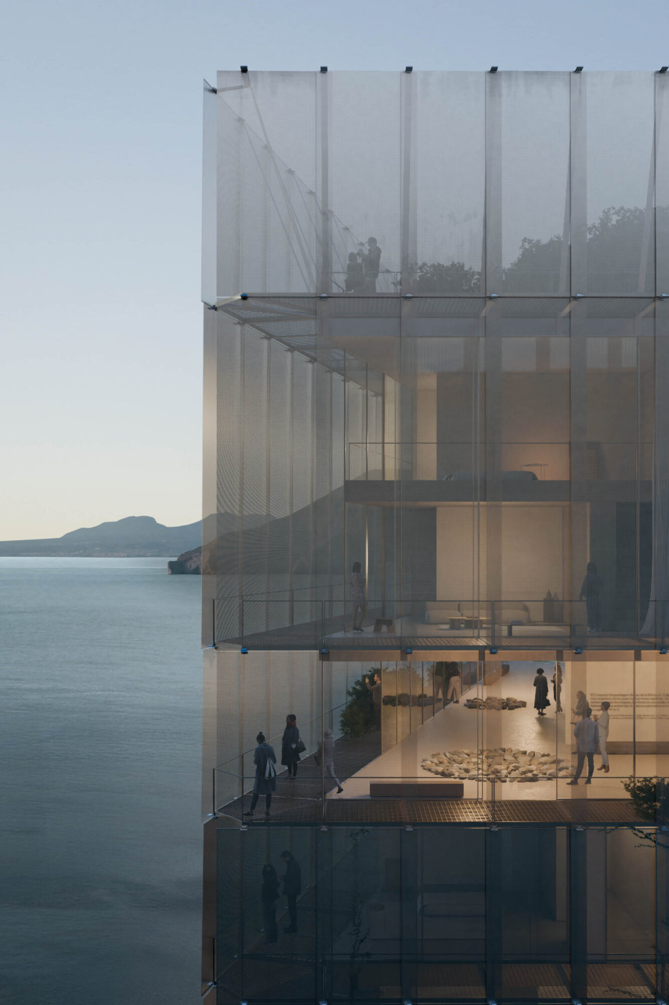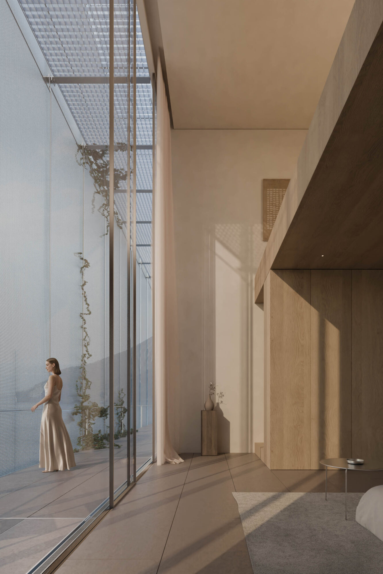 Los espacios fluyen como mareas, patios, escaleras, miradores, creando una experiencia sensorial y pausada. Con energía limpia, materiales nobles y diseño pasivo, profundiza su esencia vital. Más que un hito, es presencia, una geografía lírica arraigada en la esencia radical del lugar.